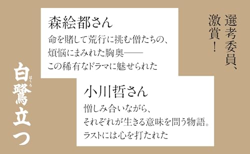 著者は2025年、本作で第32回松本清張賞を受賞し、小説家デビューを果たしました。 本作は、比叡山延暦寺の僧たちが挑む、千年の歴史を刻む仏道修行「北嶺千日回峰行」という過酷な荒行を描いた歴史小説です。